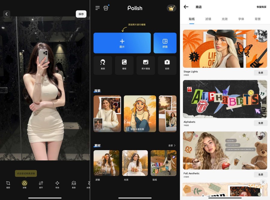 提供100多种布局、大量背景、相框、滤镜和贴纸可供选择。