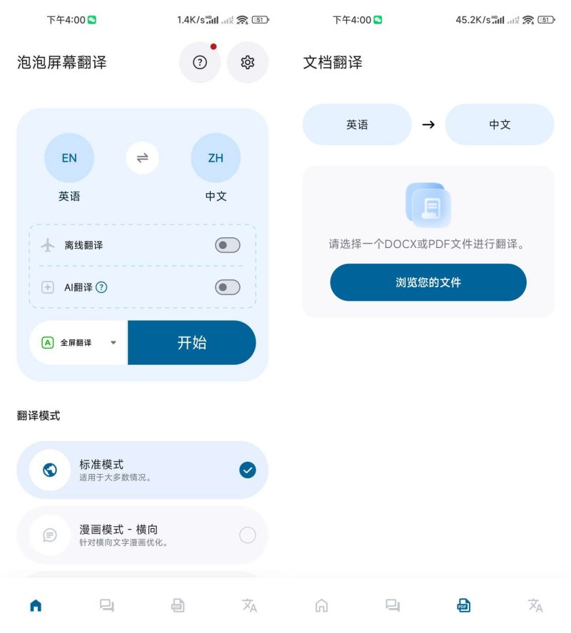 【应用名称】:泡泡屏幕翻译 【应用包名】:com.niven.translator 【应用版本】:4.4.2 【应用大小】:92.0MB 【适用平台】:安卓 【版本说明】:软件名称:泡泡屏幕翻译_4.3.6 功能介绍: 泡泡屏幕翻译是一款功能强大的翻译应用,能够支持100多种语言的互译。 主要用于翻译应用、网页、聊天、文档、漫画、游戏、影视作品中的文字。(建议挂梯,支持下载离线包) 【使用方法】:解锁会员功能