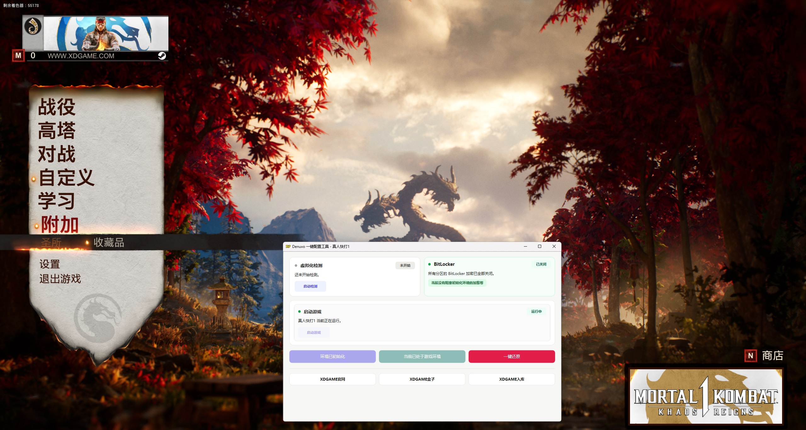 在火神刘康重塑的全新“真人快打?”宇宙中,《真人快打? 1》将以革新的战斗系统、多元游戏模式与震撼的必杀终结技,正式开启这一传奇系列的全新纪元。 虚拟工具现已进入VBS1.4成熟阶段(想体验的可以试试了)虚拟机只是用来绕D密,所以玩起来和正常版基本没差,几乎没有性能损耗。 没动手能力嫌麻烦不建议搞(其实也没想象那么麻烦),不过你真的能搞懂,D加密游戏有相关补丁全都是可以玩的。 Q1:会不会搞坏电脑 A:不保证所有人硬件都兼容都能玩,考虑清楚在下!部分人存在一定蓝屏/死机/损坏系统风险!玩不了就删不提供任何折腾帮助! Q2:游戏会不会很卡,容易闪退 A:虚拟机仅用来绕D密,几乎不占用性能。这些大作要求配置较高,有些优化也一般,(能玩情况下)如果闪退,你玩正版极大概率也会闪退 Q3:有些游戏个别CPU玩不了吗? A:最近更新的游戏补丁,大部分都能玩,之前游戏的补丁作者也一直不断更新迭代中,这是虚拟机正在迈向成熟阶段,但不保证所有人硬件都能玩考虑清楚在下。 打开游戏之前的环境准备(所有人都必须做 只需要做一次 后续畅玩所有D加密游戏) 进入主板bios设置【先在电脑任务管理器→性能→CPU→右下角看看虚拟化是否已开启 开了就无需在进bios开启】 开启虚拟化: 找到 SVM Mode (AMD) 或 Intel Virtualization Technology (Intel),设置为 Enabled。 注:每个主板具体设置不同 不知道设置可以百度查询或问豆包自己主板型号的相关设置 虚拟化开好后:打开Denuvo.exe 点击软件的初始化,然后重启电脑【开机时点F7 或 手动选择禁用驱动程序强制签名】 重启电脑后继续打开Denuvo.exe点击 启动游戏 → 开始玩耍 ↓ 站长亲测截图 ↓ Build.17941244|容量162GB|官方简体中文|支持键盘.鼠标.手柄游戏介绍